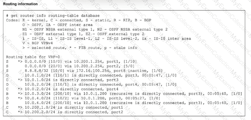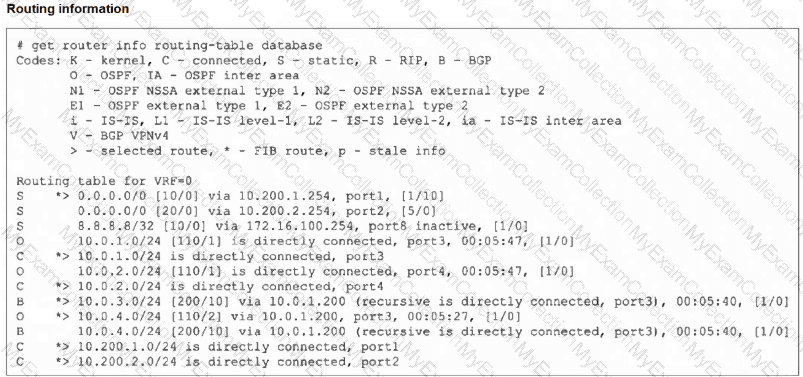 Refer to the exhibit, which shows a partial output from the get router info routing-table database command.