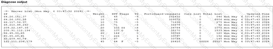Partial output of command diagnose debug rating is shown. Which FDS server will the FortiGate algorithm choose?