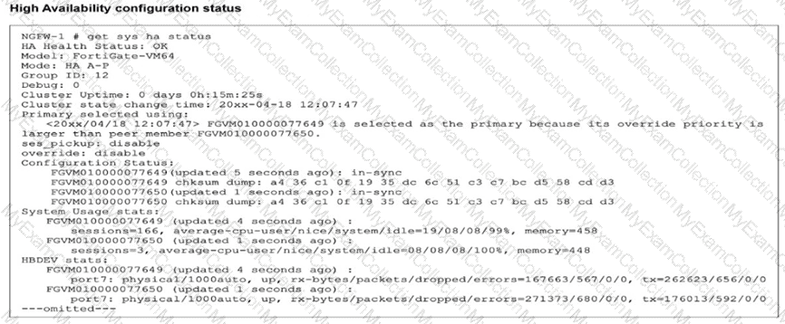 Which two statements about the output are true, considering NGFW-1 and NGFW-2 have been up for a week? (Choose two.)