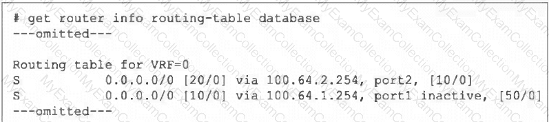 The administrator wants to configure a default static route for port3 and assign a distance of 50 and a priority of 0.