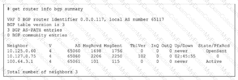Refer to the exhibit, which shows the output of get router info bgp summary.