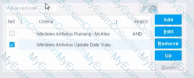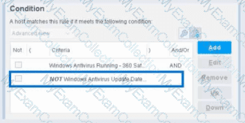 Negated condition: "Windows Antivirus Running Does not meet the following criteria (= True)"