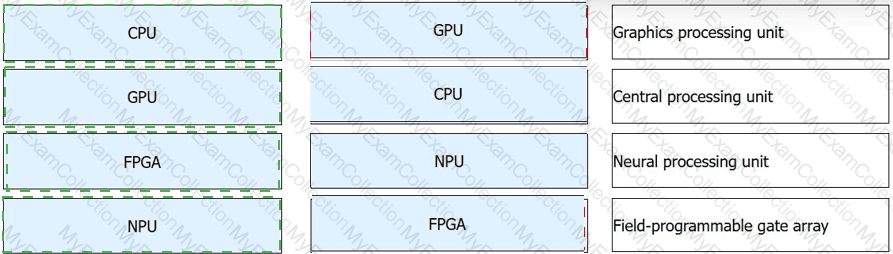The correct matching is based on the standard definitions of the four processor types used in intelligent vision architecture. A CPU is the central processing unit , which handles general-purpose control, logic execution, and system coordination. A GPU is the graphics processing unit , originally designed for graphics rendering but now widely used for parallel computing tasks. An FPGA is a field-programmable gate array , which can be reconfigured for specific hardware logic functions and is valuable in acceleration and low-latency processing scenarios. An NPU is a neural processing unit , specialized for AI inference and deep-learning operations.