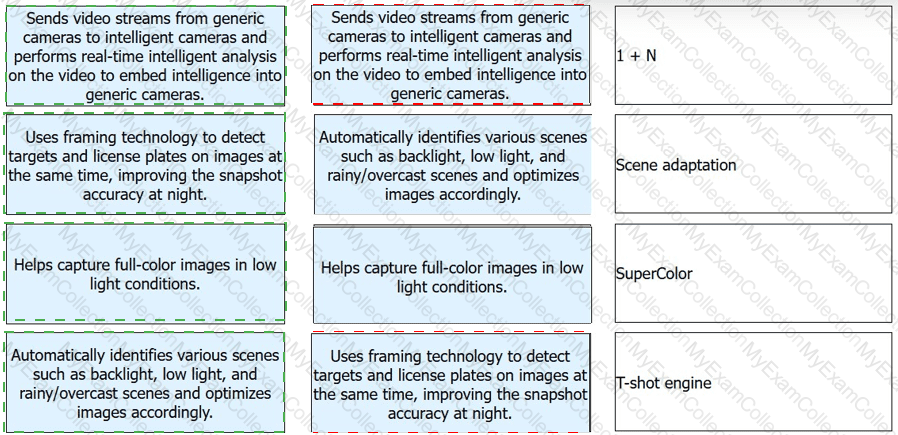 Link the following features of Huawei intelligent cameras to the corresponding description.