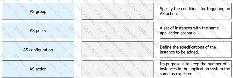 Match the following Auto Scaling (AS) concepts with their descriptions in Huawei Cloud Stack.