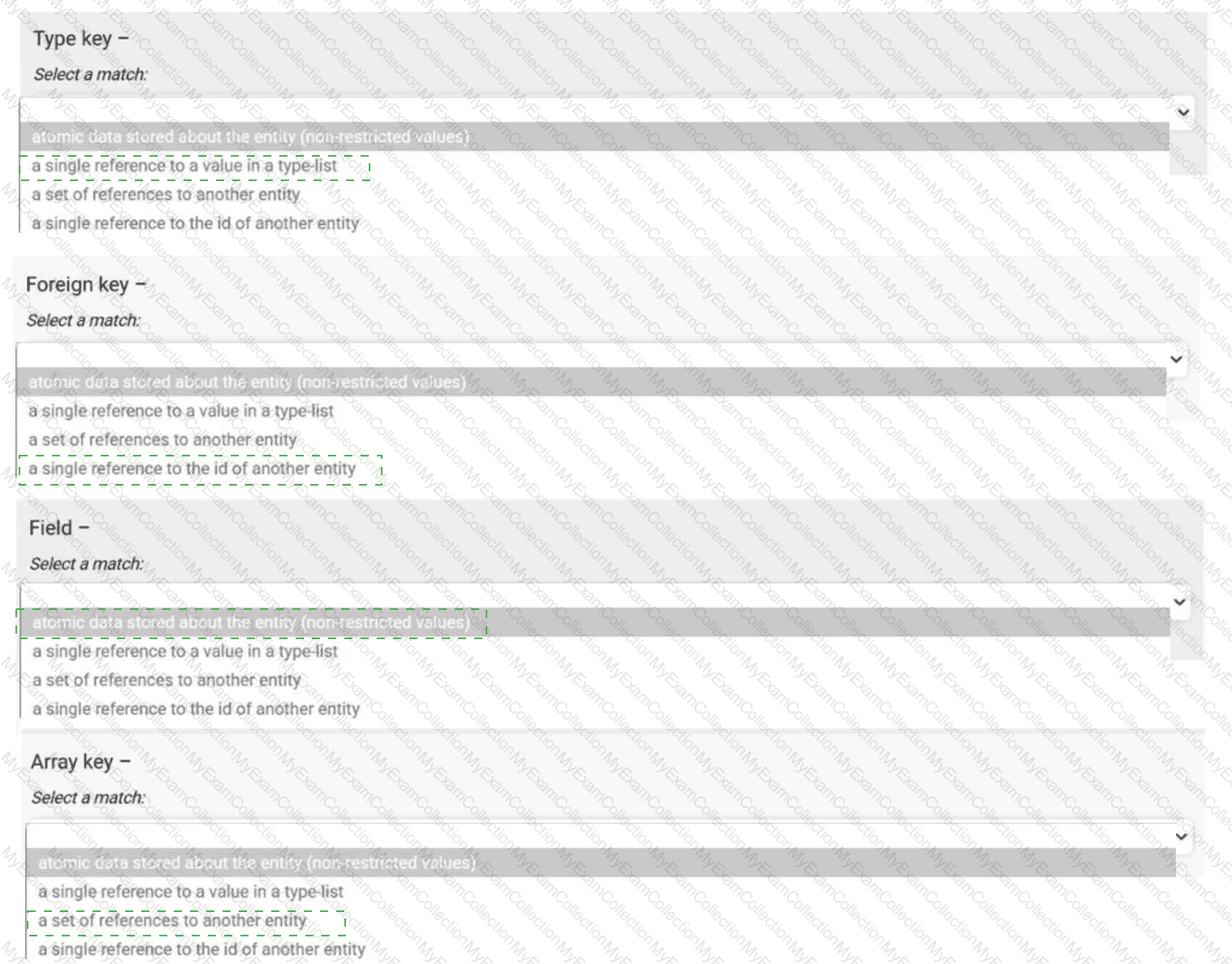 Data Model Entities: Match the entity type with the appropriate description.