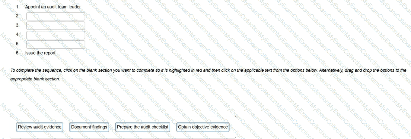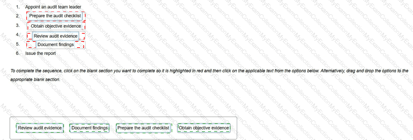 To complete the sequence, click on the blank section you want to complete so it is highlighted in red and then click on the applicable text from the options below. Alternatively, drag and drop the options to the appropriate blank section. "