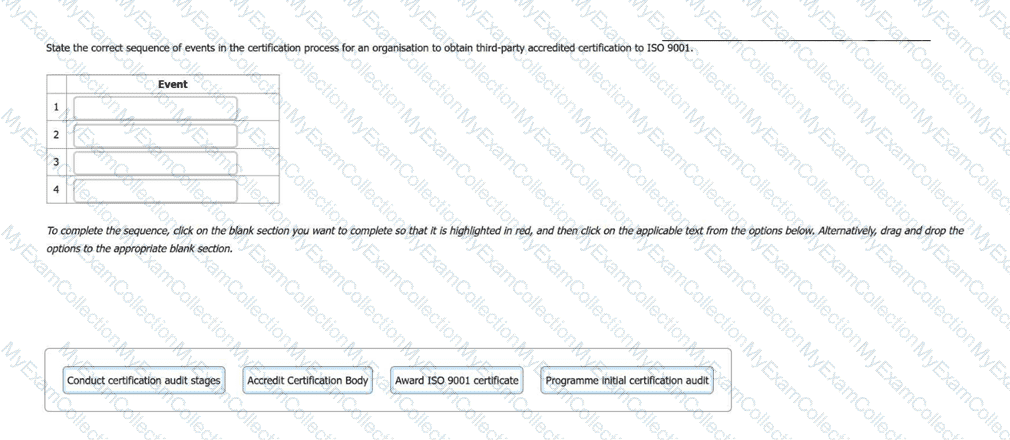 To complete the sequence, click on the blank section you want to complete so it is highlighted in red and then click on the applicable text from the options below. Alternatively, drag and drop the