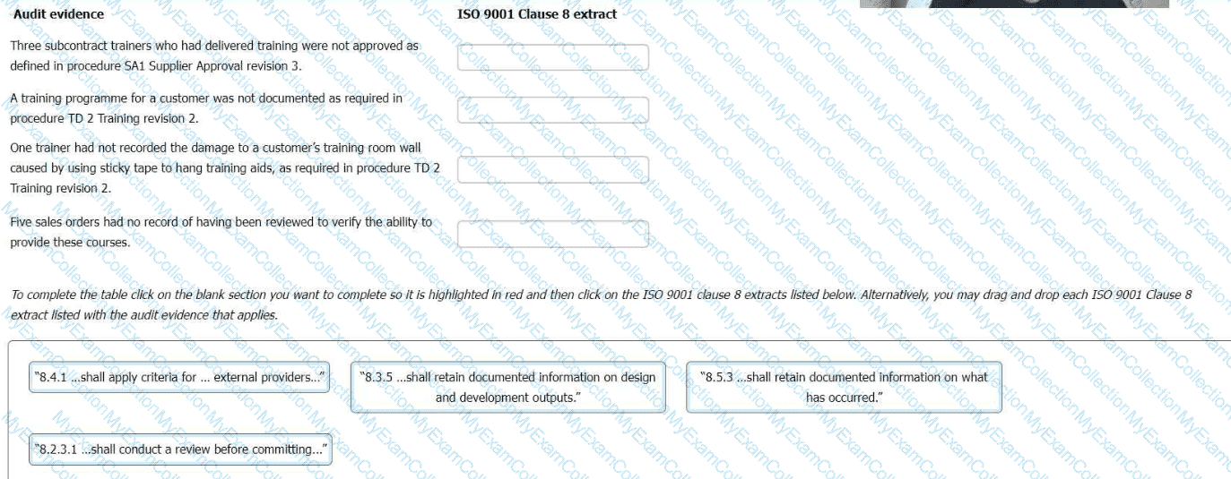 You have gathered audit evidence as outlined below. Match the ISO 9001 Clause 8 extract to the audit evidence.