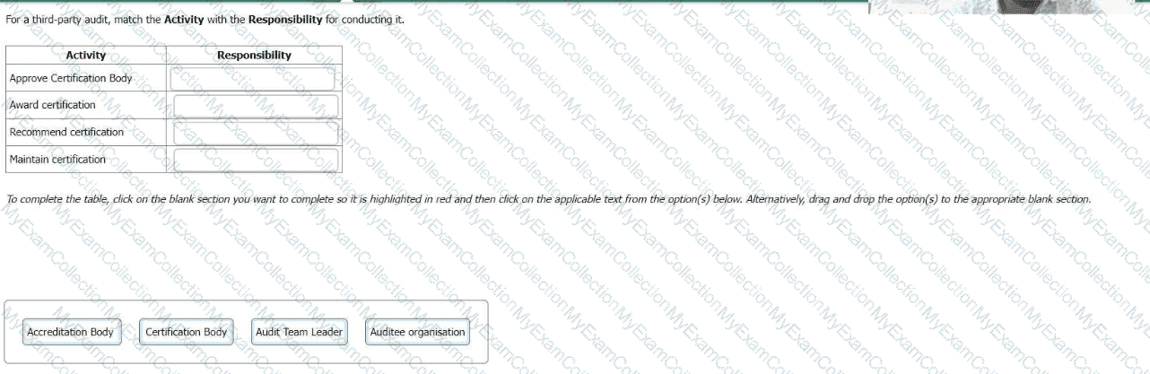 For a third-party, match the Activity with the Responsibility for conducting it.