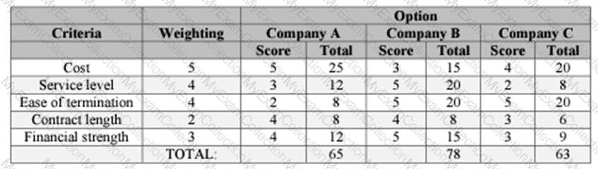 Explain which company you would award the contract to base on the weighted score card in table below.