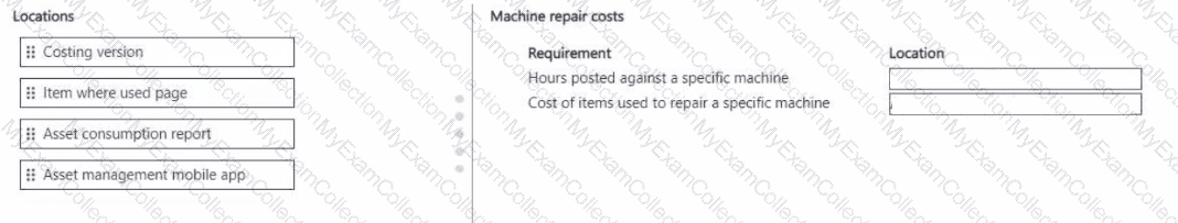 What should you use to identify the costs? To answer, move the appropriate locations to the correct requirements. You may use each location once, more than once, or not at all. You may need to move the split bar between panes or scroll to view content