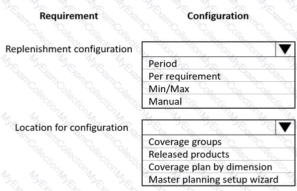 Which configuration should you use for each requirement? To answer, select the appropriate options in the answer area.