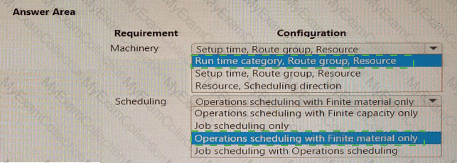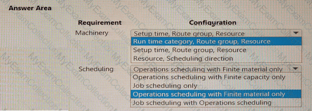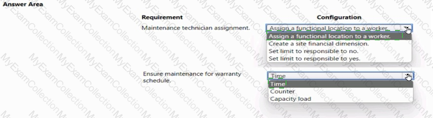 You need to configure the requirements for metal fabrication equipment maintenance. What must you configure? To answer, select the appropriate options in the answer area.