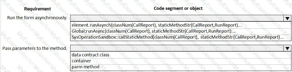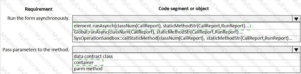 Which code segments should you use? To answer, select the appropriate options in the answer area.