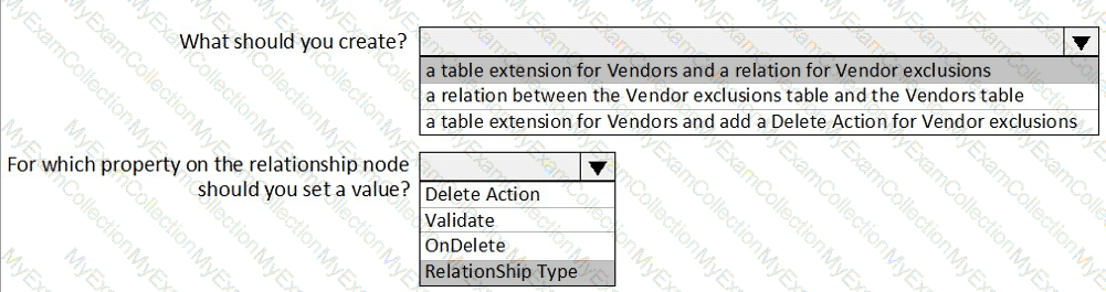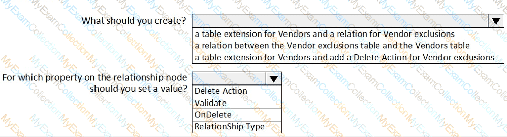 You need to develop, test, and deploy the Vendor Exclusion list solution.