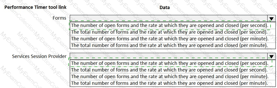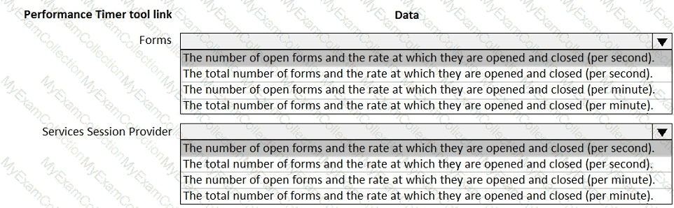 You launch the Performance Timer tool to troubleshoot performance issues with a business process.