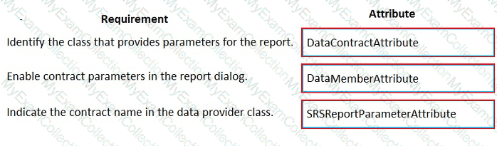 Which attributes should you use? To answer, drag the appropriate attributes to the requirements. Each attribute answer may be used once, more than once, or not at all. You may need to drag the split between panes or scroll to view content.