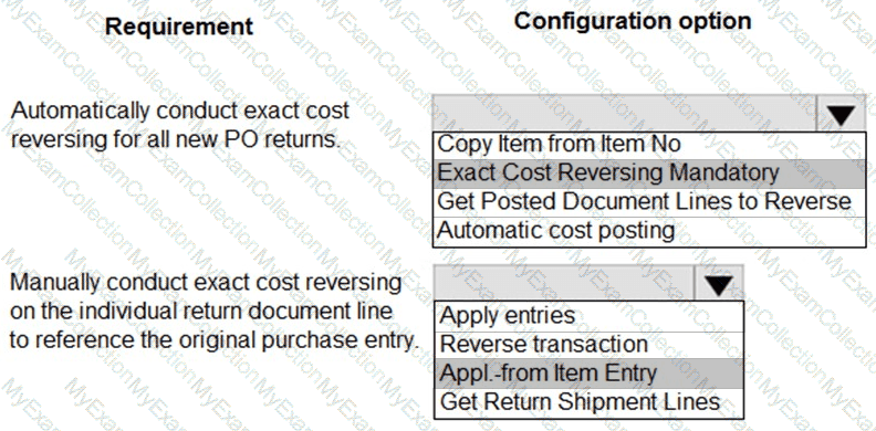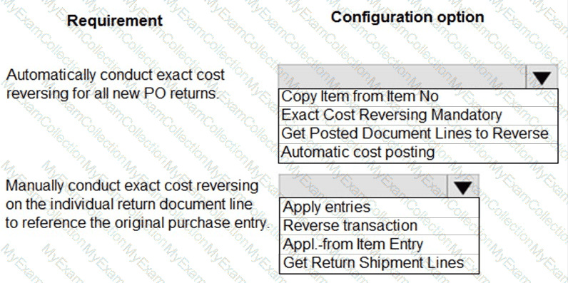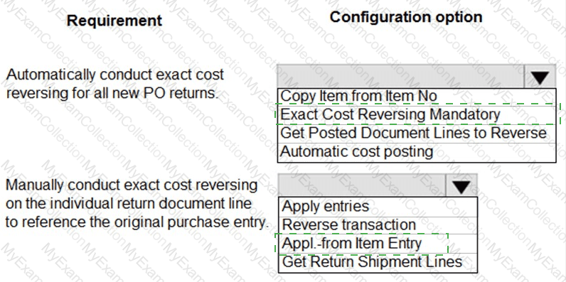 A company uses Dynamics 365 Business Central to manage accounts payables. The company uses exact cost reversing when returning products to vendors.