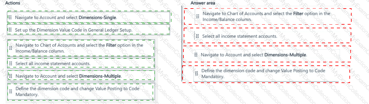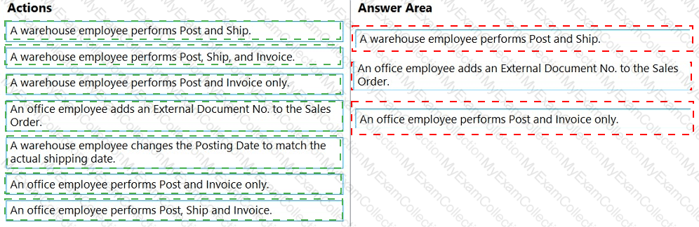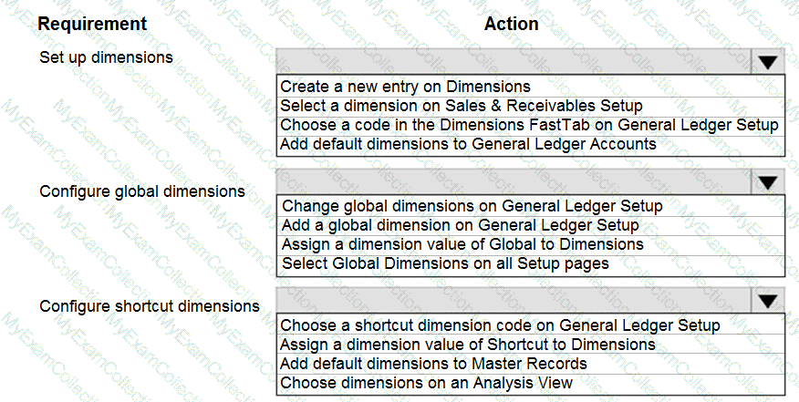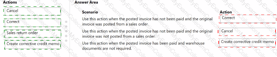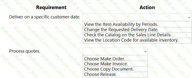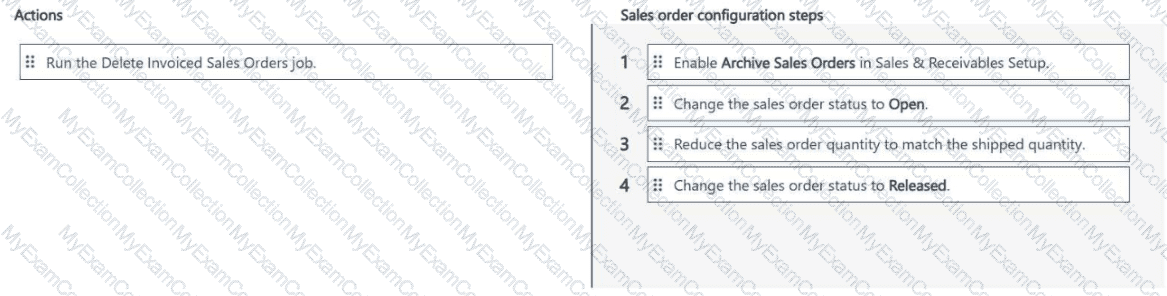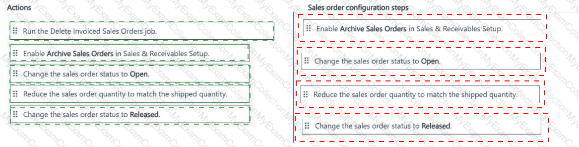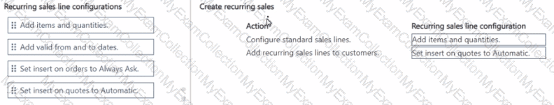 How should you complete each action? To answer, move the appropriate recurring sales line configurations to the correct actions. You may use each recurring sales line configuration once, more than once, or not at all. You may need to move the split bar between panes or scroll to view content.