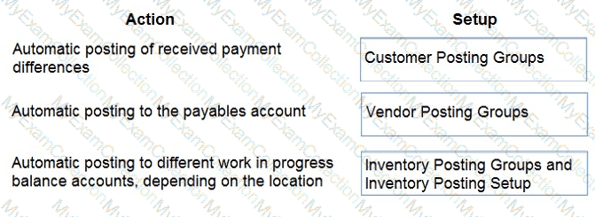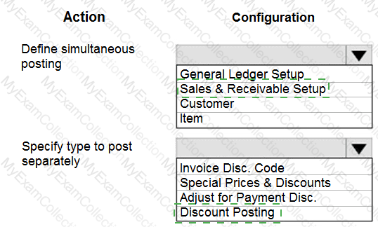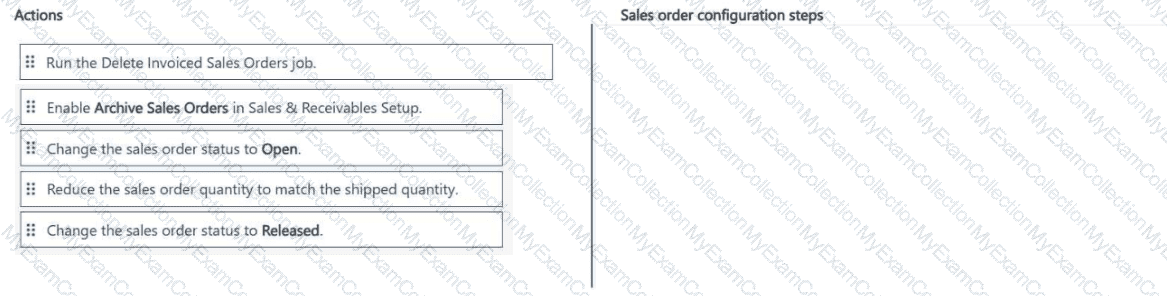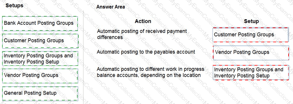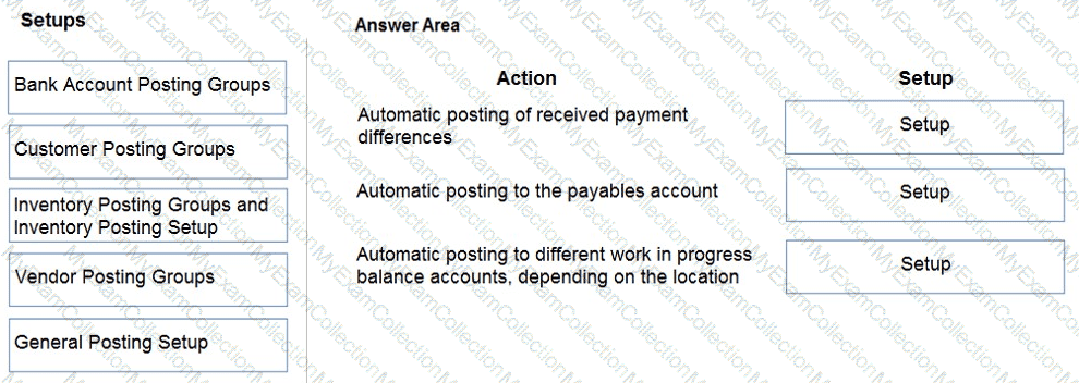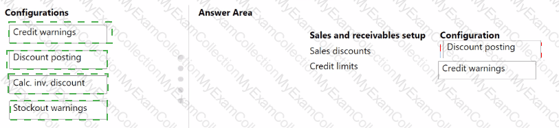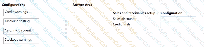 What should you configure for each setup area? To answer, drag the appropriate configurations to the correct sales and receivables setup. Each configuration may be used once, more than once, or not at all. You may need to drag the split bar between panes or scroll to view content.