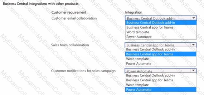 A company uses Dynamics 365 Business Central.