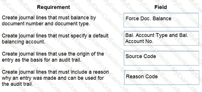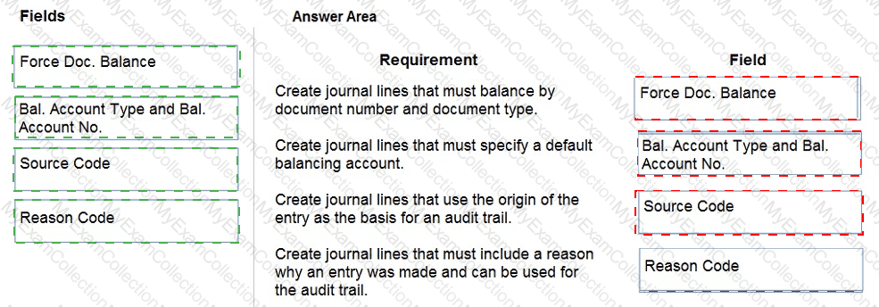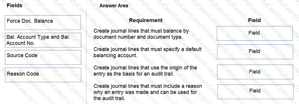 What should you do? To answer, drag the appropriate fields to the correct requirements. Each field may be used once, more than once, or not at all. You may need to drag the split bar between panes or scroll to view content.
