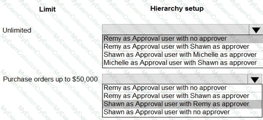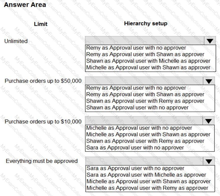 Which hierarchy setup should be used for each limit? To answer, select the appropriate options in the answer area.
