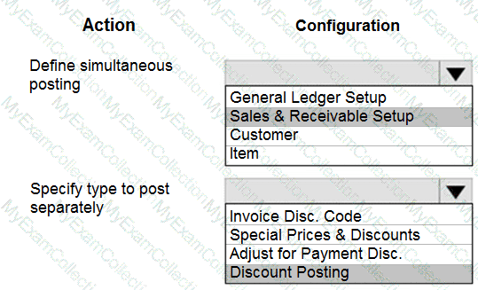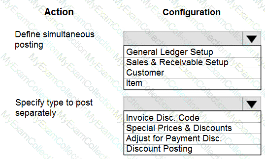 You need to configure the system to post to the receivables account for wholesale customers. Which two configurations should you use? Each correct answer presents part of the solution. NOTE; Each correct selection Is worth one point.