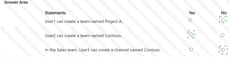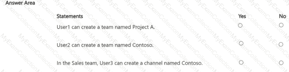 You have a Microsoft 365 subscription that uses Microsoft Teams and contains a user named User.