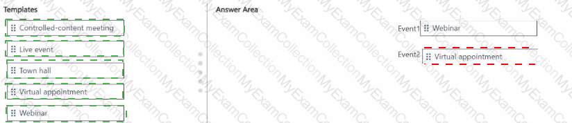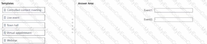 Which meeting template should you use for each event? To answer, drag the appropriate templates to the correct events. Each template may be used once, more than once, or not at all. You may need to drag the split bar between panes or scroll to view content.