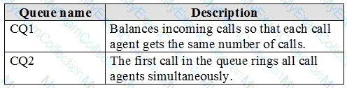 Which routing method should you configure for each call queue? To answer, select the appropriate options in the answer area.