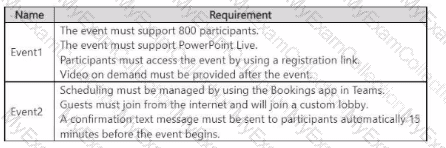 You have a Microsoft 365 E5 subscription and use Microsoft Teams. You plan to schedule the events shown in the following table.