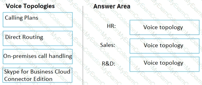 You need to recommend a voice topology for the departments. The topology must meet the calling requirements and the security requirements.