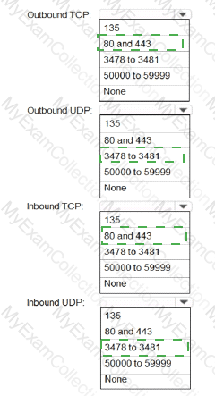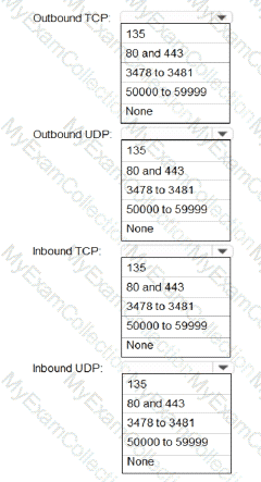 Which inbound and outbound ports should you recommend? To answer, select the appropriate options in the answer area.