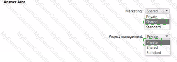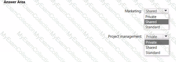 Which type of channel should you use for each department? To answer, select the appropriate options in the answer area.
