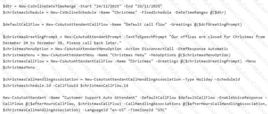 You need to configure a virtual receptionist for your company ' s main office located at 1 Microsoft Way, Redmond. The solution must meet the following requirements: