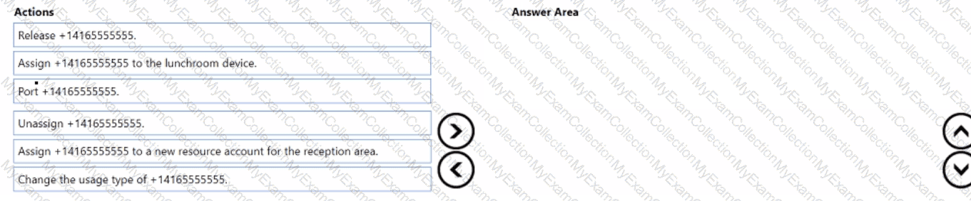 You need to implement the planned changes for the +14165555555 reception area number. You create a new call queue.
