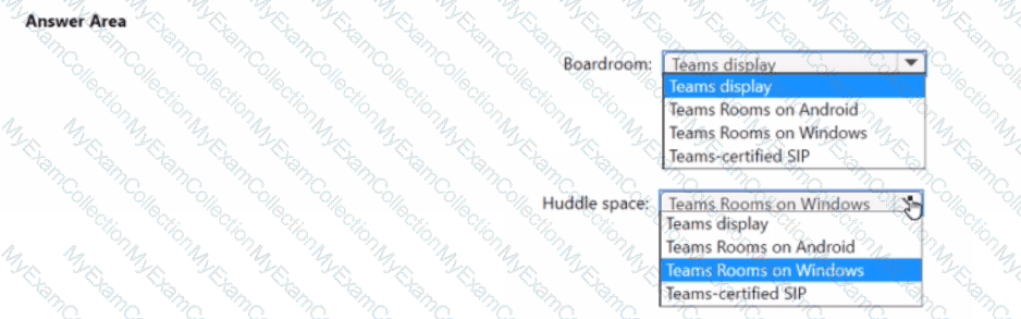 You need to implement the planned changes for the boardrooms and huddle spaces. The solution must meet the technical requirements. Which type of endpoint should you use for each location? To answer, select the appropriate options in the answer area.