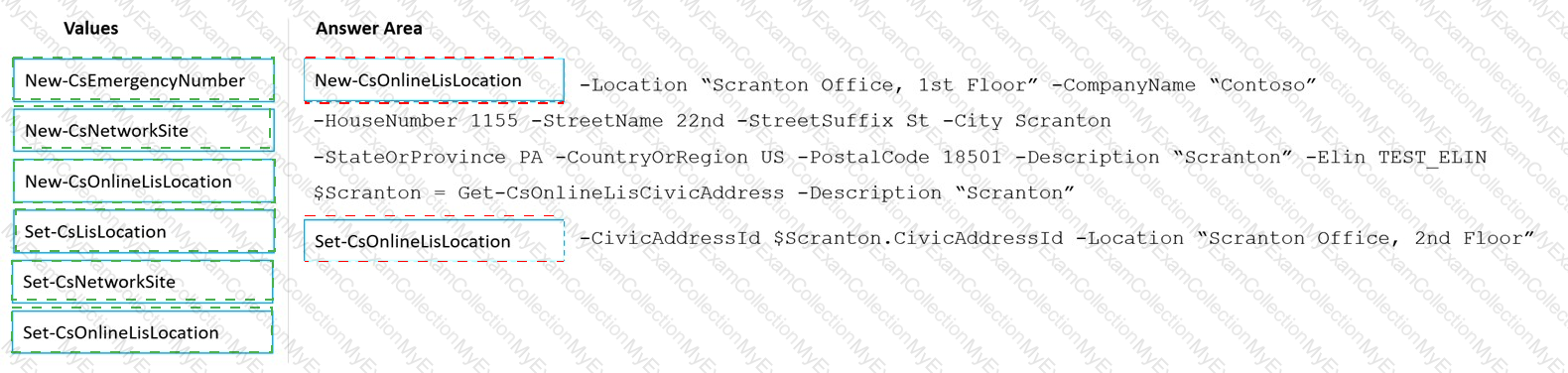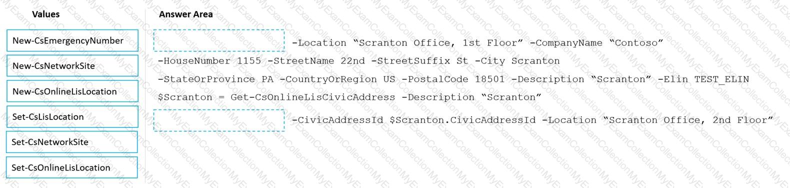 How should you complete the PowerShell script? To answer, drag the appropriate values to the correct targets. Each value may be used once, more than once, or not at all. You may need to drag the split bar between panes or scroll to view content.