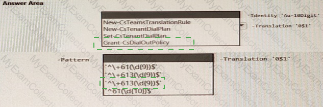 You need to ensure that numbers dialed from the Melbourne warehouse conform to the dialing rules of the phone earner. How should you complete the command? To answer, select the appropriate options in the answer area. NOTE: Each correct selection is worth one point.