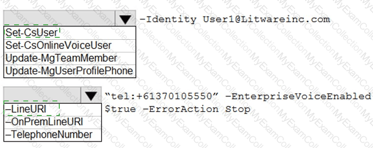 How should you complete the PowerShell command? To answer, select the appropriate options in the answer area NOTE: Each correct selection is worth one point.