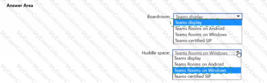 You plan to implement Microsoft Teams Rooms shared room video conferencing.