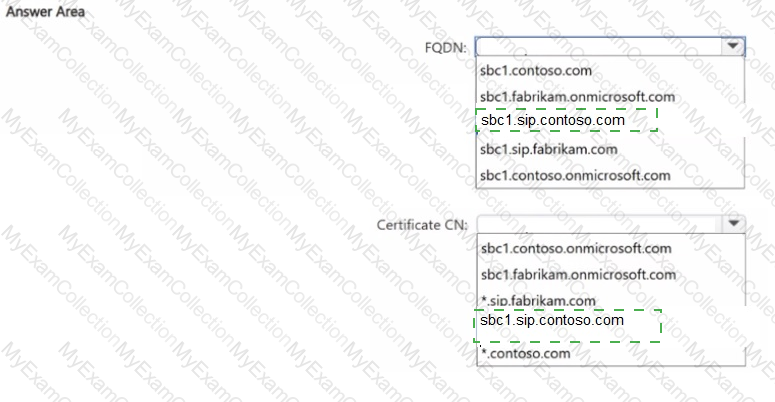 You need to recommend a valid FQDN and the common name (CN) of a public trusted certificate for SBC1.