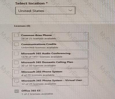 Which three licenses should you assign? To answer, select the licenses in the answer area.