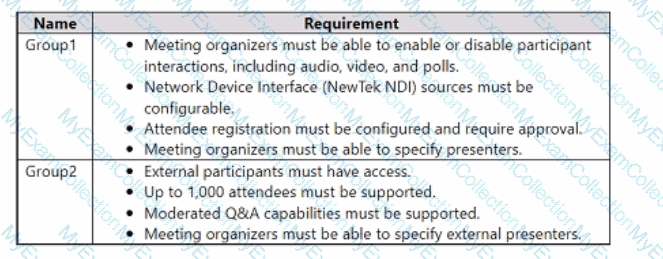 You need to configure Teams webinars to meet the following requirements: