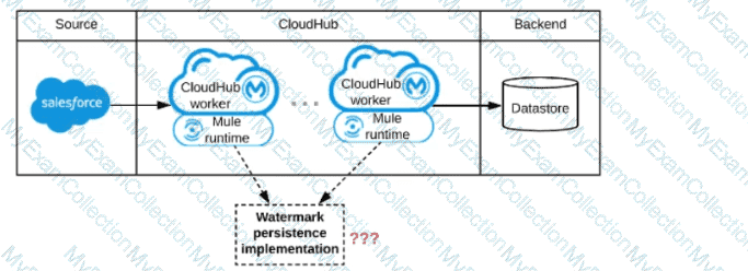 A Mule application is being designed to be deployed to several CIoudHub workers. The Mule application's integration logic is to replicate changed Accounts from Satesforce to a backend system every 5 minutes.