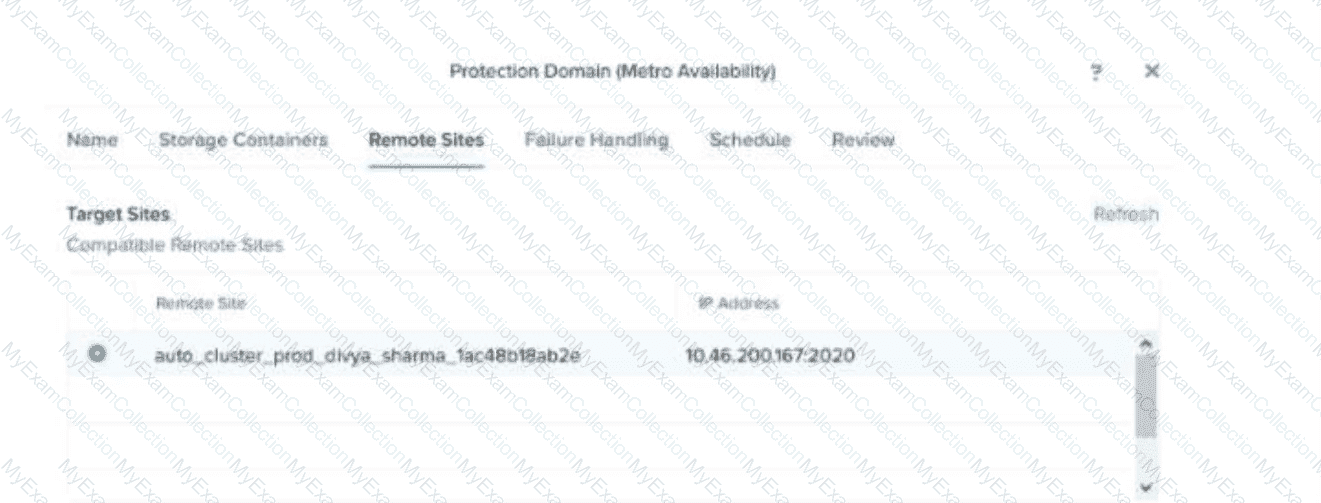 An administrator is trying toconfigure Metro Availabilitybetween NutanixESXi-based clusters. However, theCompatible Remote Sitesscreen does not list all required storage containers.
