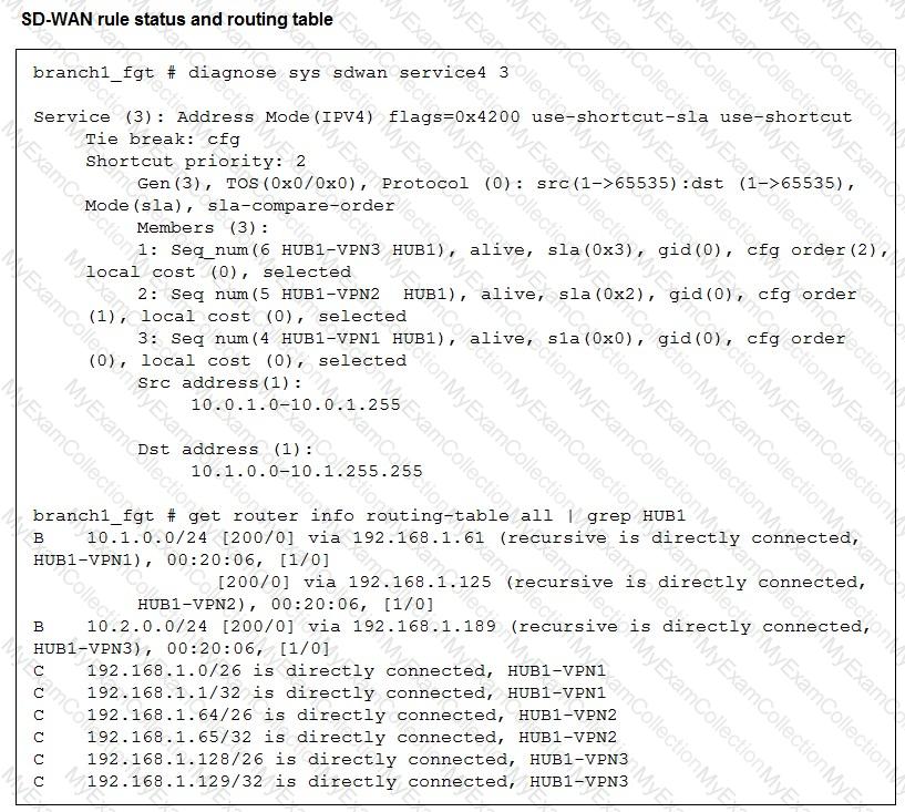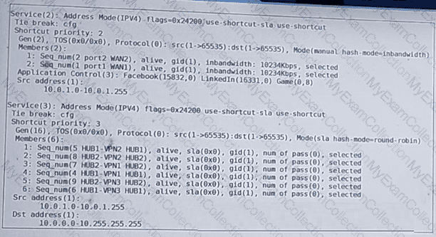 The administrator configured two SD-WAN rules to load balance traffic.