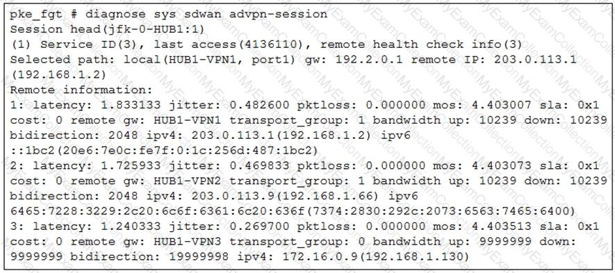 Refer to the exhibit that shows a diagnose output on FortiGate.